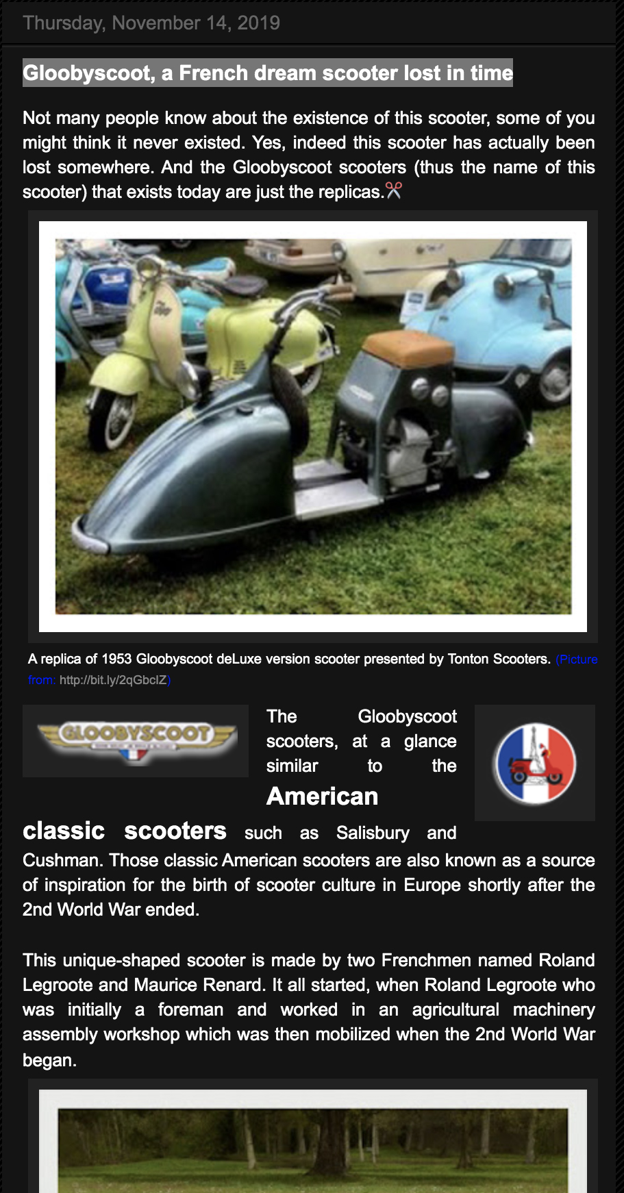 Vous avez pu voir dans le scootitude précedent (N°17) les quelques documents retrouvés par Valentine Dubuc.