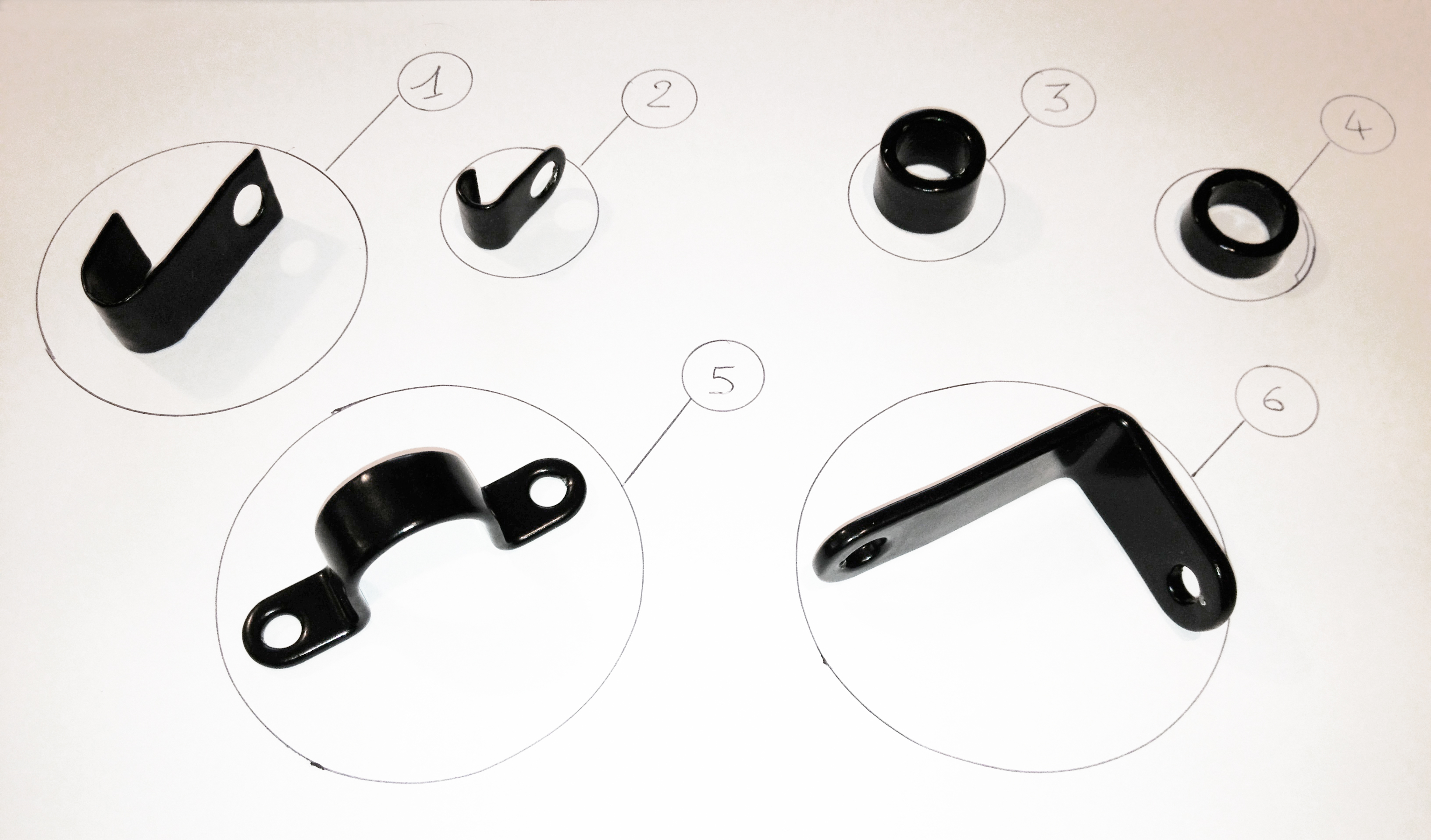 1.2 ça ressemble a des supports de câble de compteur ( lourd ! ) a poser en dessous pour le guider ( éviter la béquille par exemple )