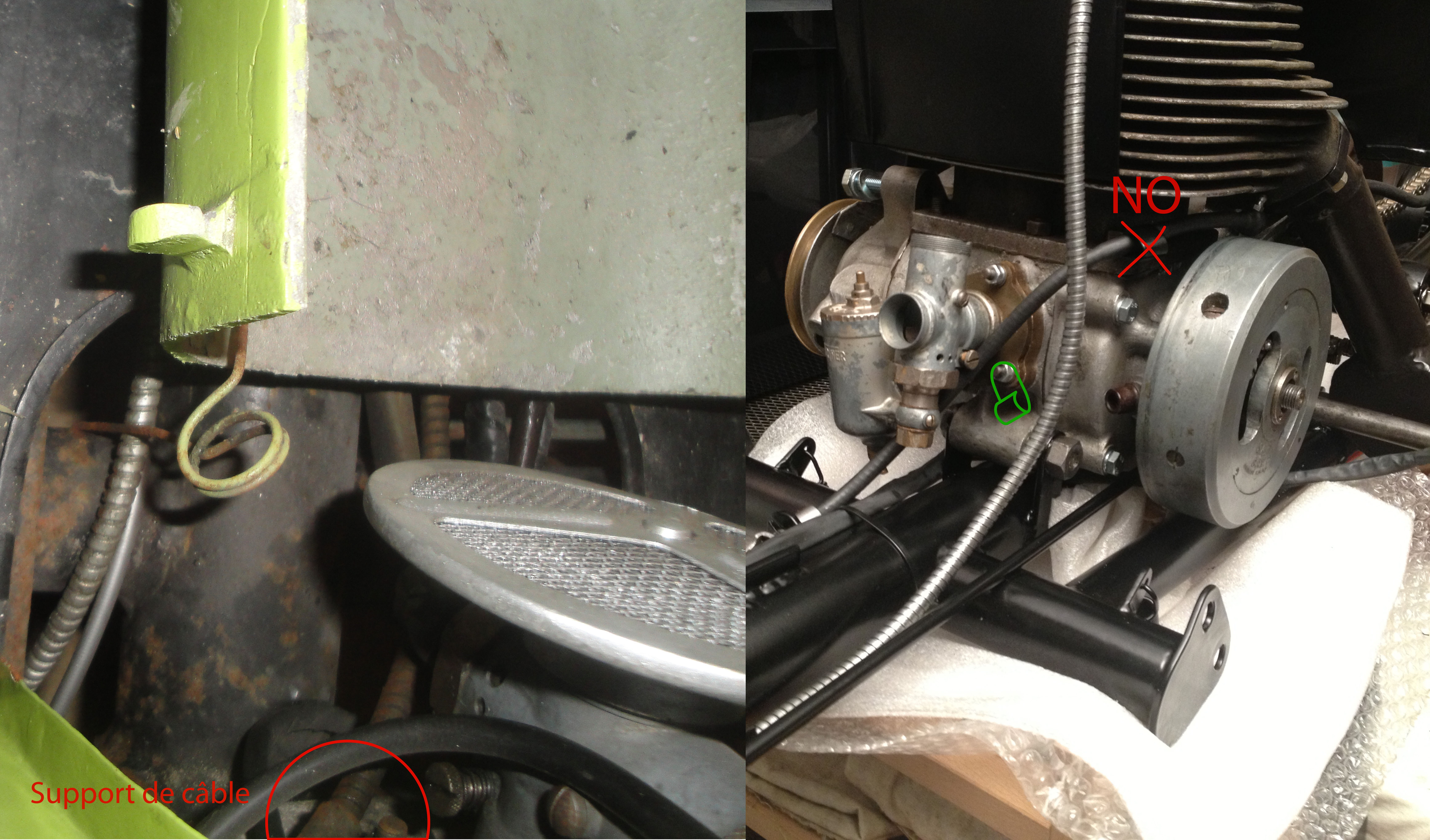 Mais ce câble passe-t-il entre le pot et le bloc moteur avant de terminer sa course vers la roue arrière? Ha ha!!