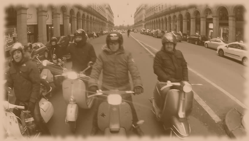 Pleins de bagnoles, motos, cyclos, tracteurs anciens déboulant de partout dans Paris. C'est génial.