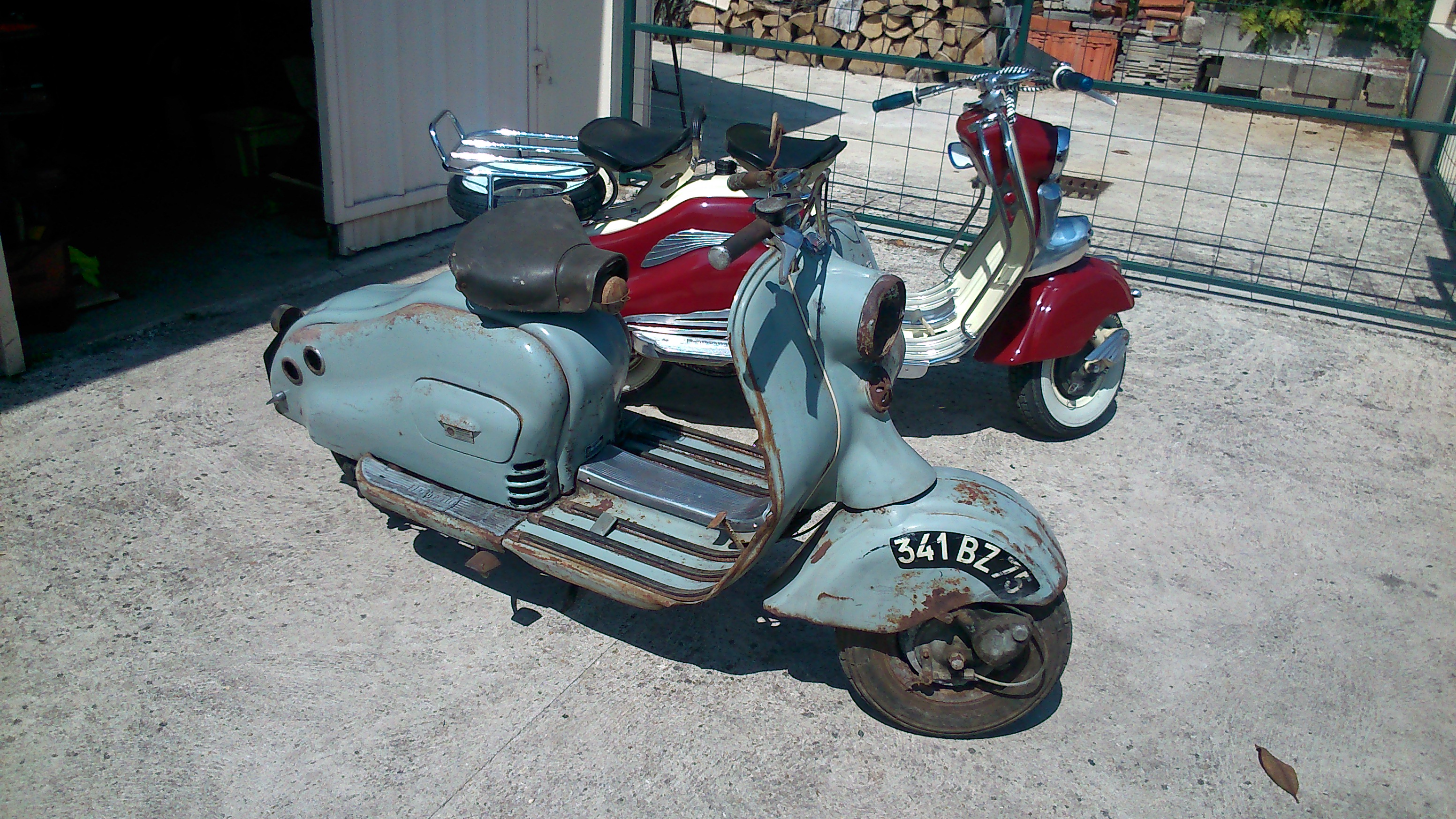 salut a tous je viens de rentre une nouveau scoot cette semaine,il s agit un lambretta ld de 52 je pense ?? il est stock jamais restaurer avec son immat d origine ,il n est pas trop pourri donc je pense le laisser dans son jus juste nettoyer et reviser le moteur et 2/3 bricole ,il me manque ,un phare complet,le pot,la selle arriere car dessus il y a une selle Merat ?? d ailleurs a ce sujet il y a une selle gaultier devant est ce normal ? allez place au photos .