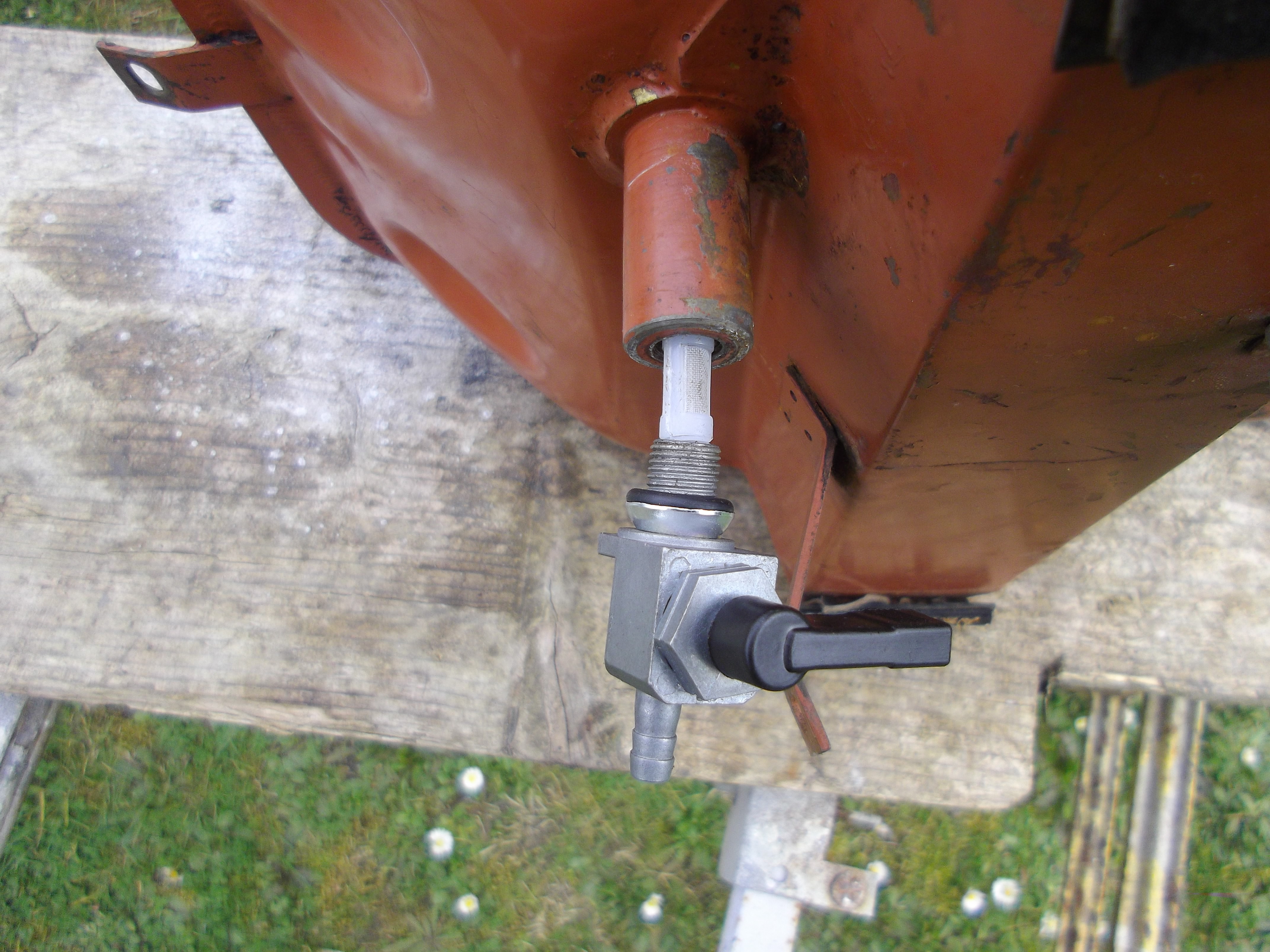 la suite avec nettoyage du réservoir + mise en place d'un robinet tournant a la place de cette merde de robinet a tirette d'ailleur changé sur le millesime suivant comme par hazard, un raccourcissement de la chaine a été necessaire cette derniére s'étant allongée avec le temps combiné avec la nouvelle suspension faisait que meme avec les excentriques a fond elle pendouillait donc exit deux maillons