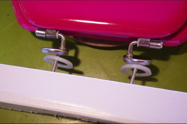 c'est pas comme ça qu'il faut s'y prendre 1 fixer la selle sur la partie avant et voir si elle se souléve bien 2 fixer la barre arrondie au 2 pattes arriére de la selle 3 descendre la selle avec la barre courbée et voir ou elle se pose sur la coque du scoot 4 avec un feutre marquer l'endroit des 2 trous de la barre courbe 5 aprés avoir resoulevé la selle percer a l'endroit des 2 marquages coque 6 boulonner la barre courbée avec la coque et le tour est joué.