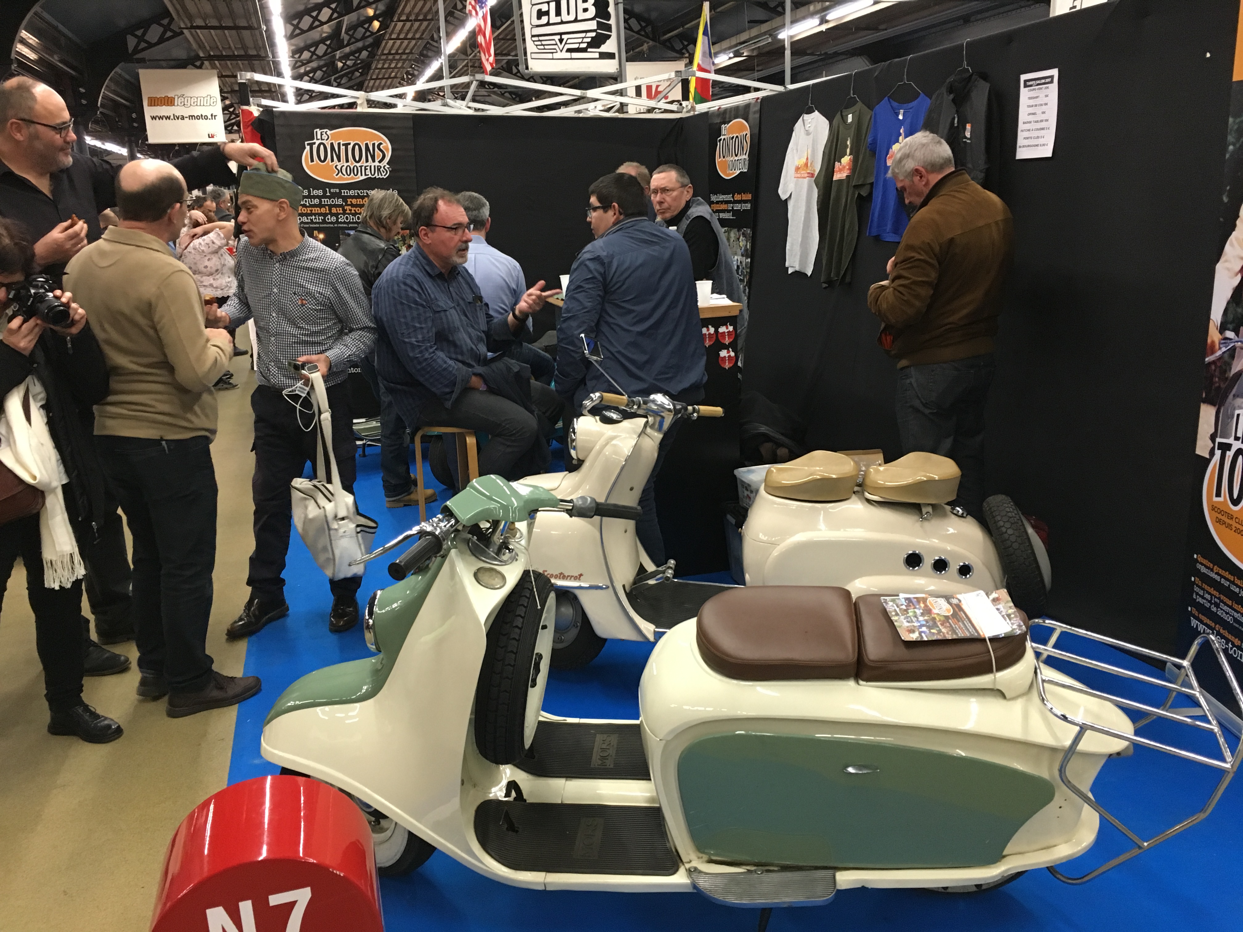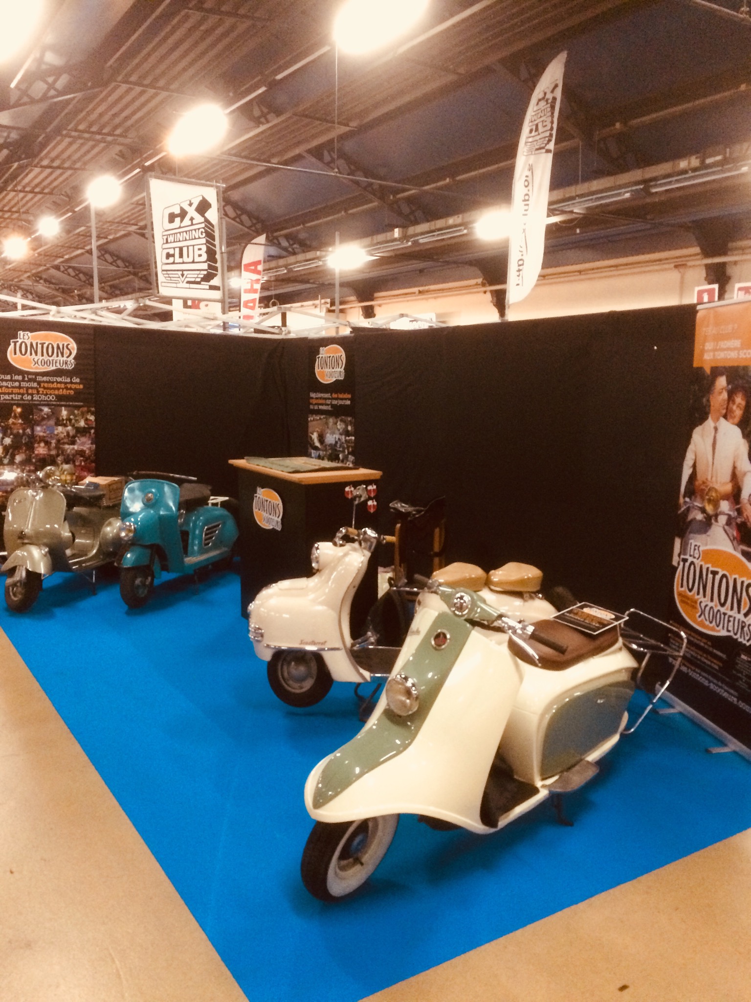 Quatre scooters étaient exposés sur le stand : L'ACMA51 fraîchement restauré et le Guillier de Benjamin, venu d'Auxerre, le Scooterrot de Jean-Marc,, et l'Alcyon Paris Nice de Thierry Dubois. Merci à vous pour votre confiance, et votre présence sur le stand.