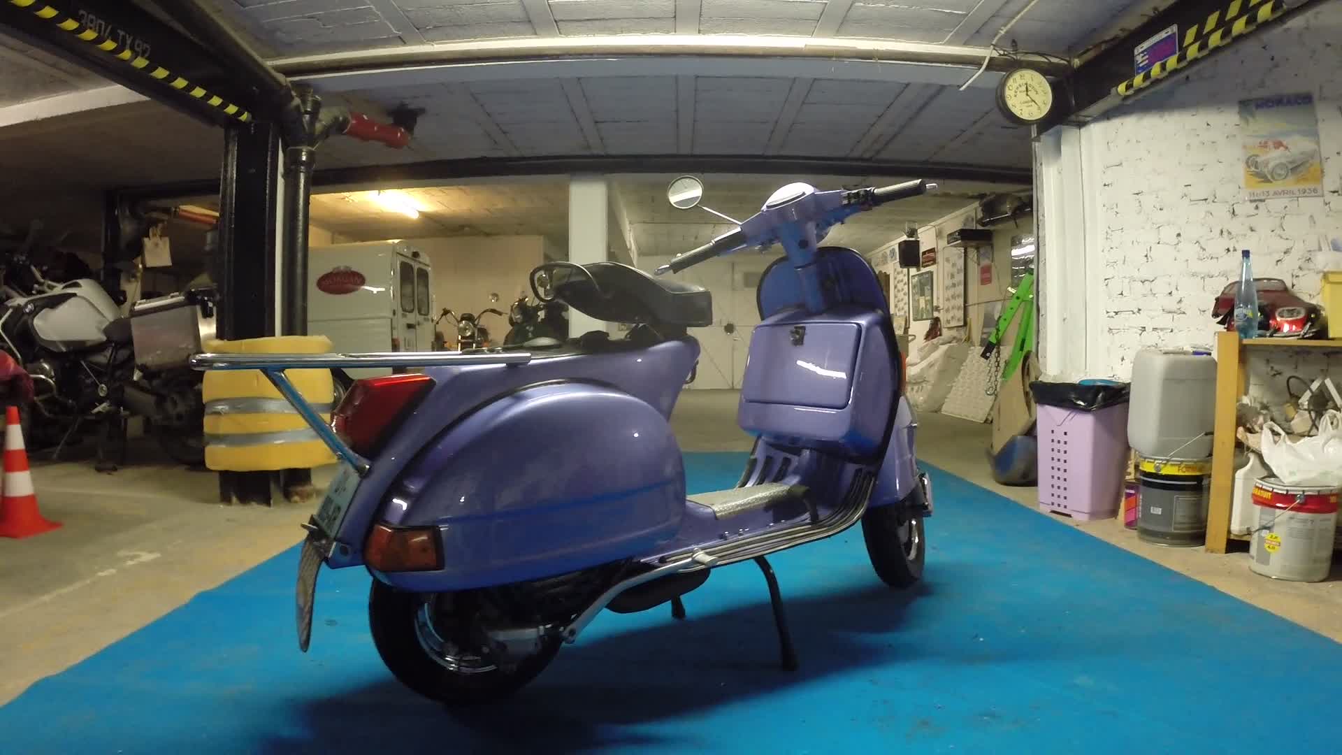 Le "Chouette Mauve", c'est aucun crash-bar, une selle solo, et même pas l'indication "PX 125" sur les ailes, ni le "Vespa" sur le tablier.