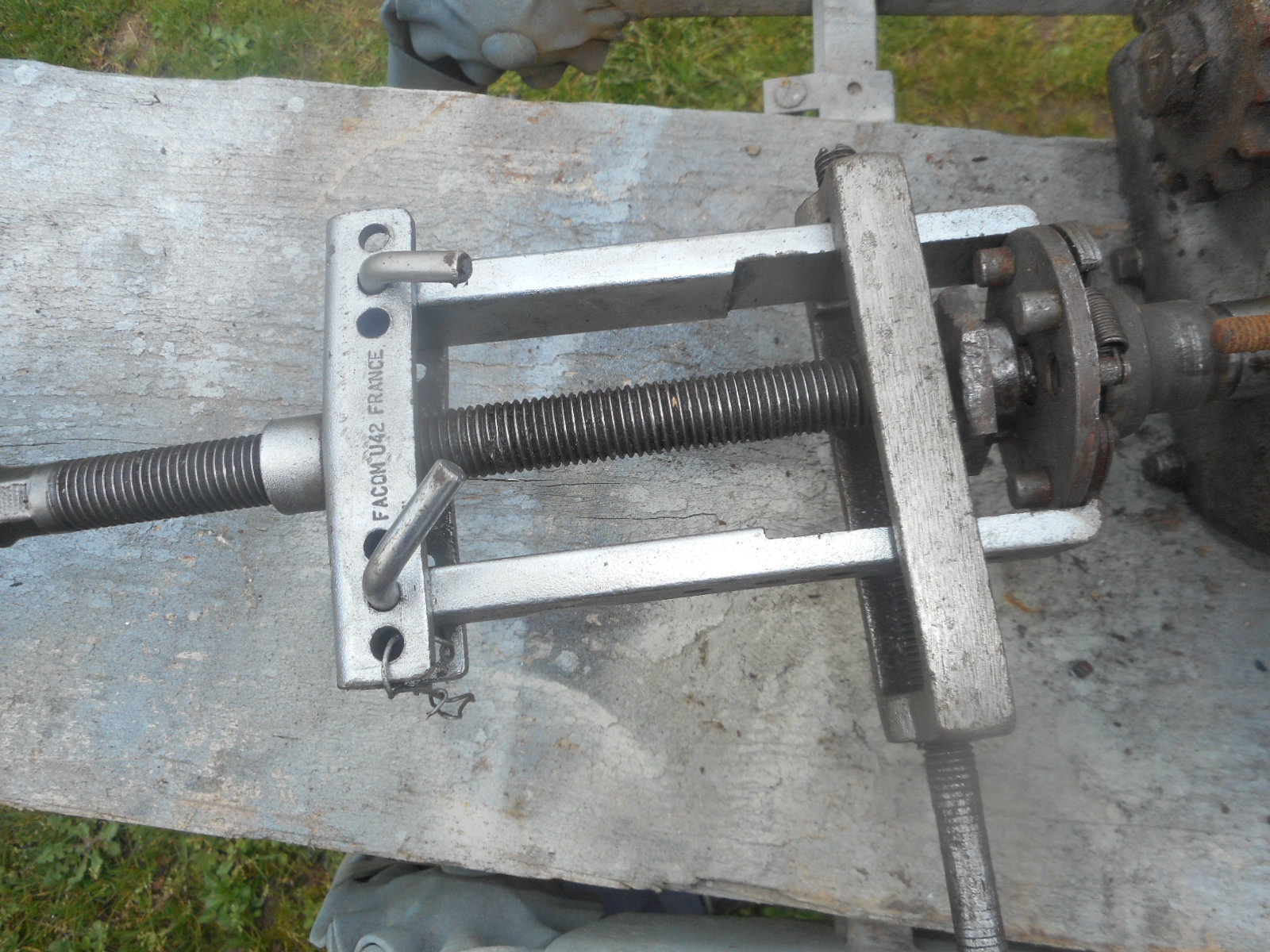 salut oui c'est le meme que le d45 mais le probléme c'est que les 2 pas de vis dans la platine porte rotor c'est du m9x125 c'est a dire pas très courant et en plus une platine (il y a de très grosses probabilités) qui n'a pas été extraie depuis plus de 60 ans est littéralement soudée avec la queue de vilo conclusion il y a encore de très grosses probabilités que le pas de vis céde perso j'utilise depuis des années sur tous les scoots qui ont ce systéme ( speed 115, paris nice, motobec 2 et 4 temps) l'extracteur u42 de chez facom et celui la rien de lui résiste un conseil toujours laisser le gros écrou vissé sur la queue de vilo histoire de ne pas ouvrir le pas de vis de la queue car quand l'extracteur est en tension il faut taper carrément avec une massette ou alors la clef a choc, un petit coup de chauffe sur la platine peu aussi aider.